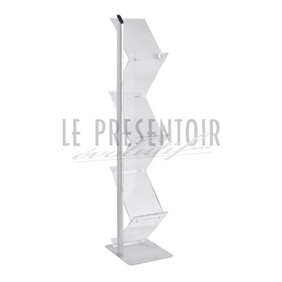 Mettez en avant vos brochures avec élégance grâce au présentoir « Zig Zag ». Ses 6 compartiments en acrylique transparent (3 par face) offrent une visibilité optimale et un rendu professionnel.
